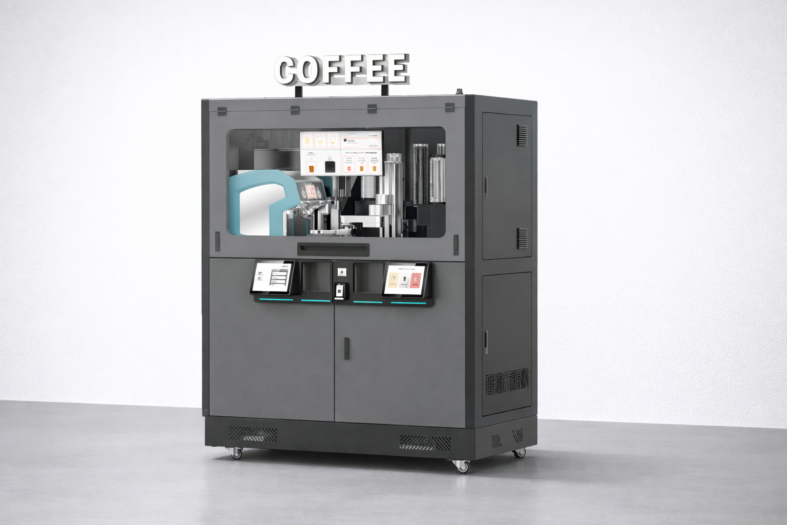 The KioCafé Kiosk Series 2.3 is a fully integrated, high-capacity beverage kiosk built for fast, unattended service. Capable of producing up to 140 cups at speeds of 30 seconds or less, Series 2.3 is a scalable, data-driven solution for high-traffic environments.