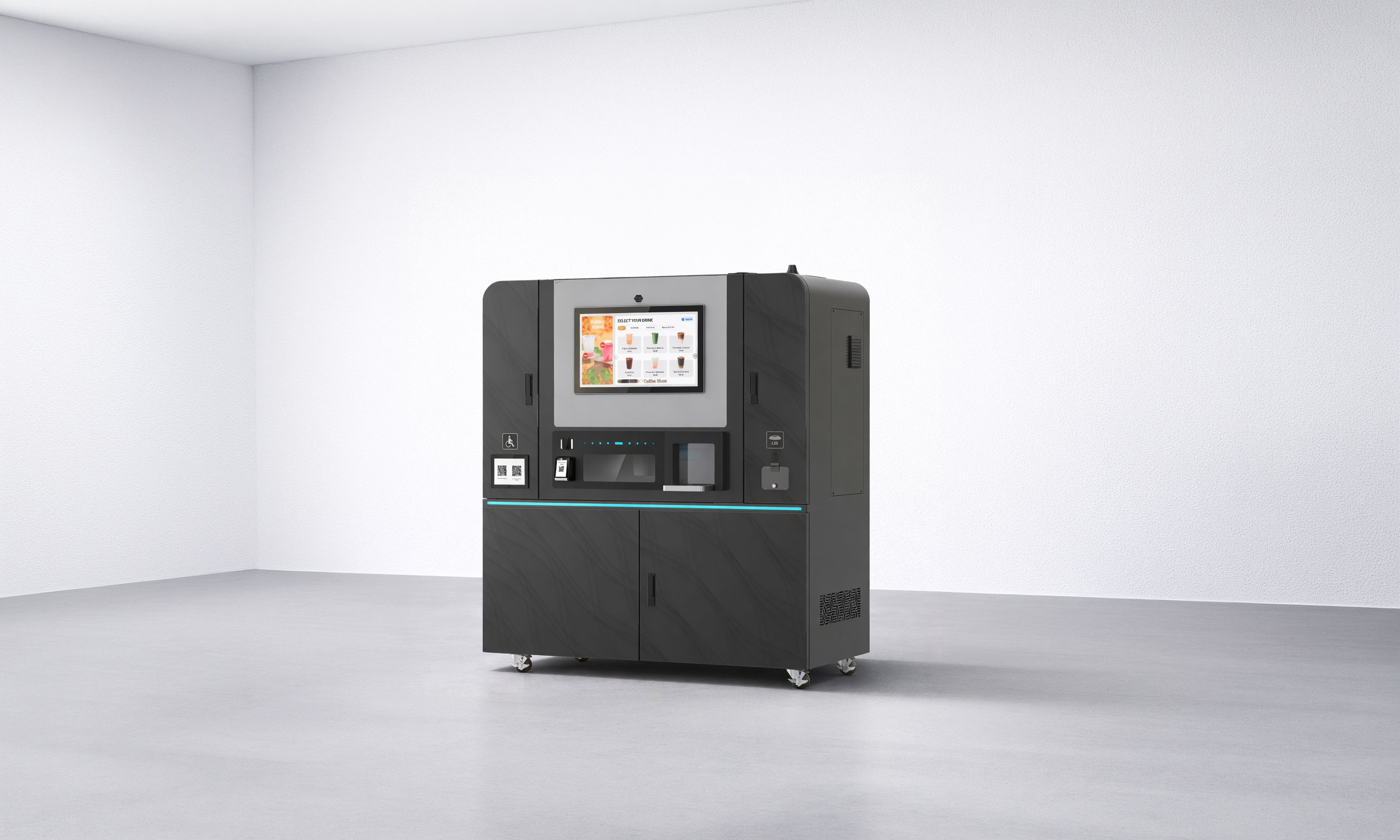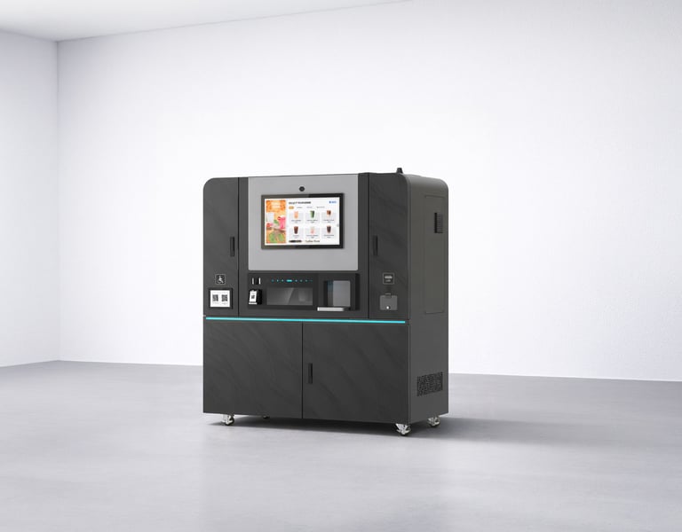 The KioCafé Kiosk Series 2.2 is a compact, high-performance kiosk designed to deliver premium drinks in under 30 seconds. With a 150-drink capacity and support for espresso, fresh milk, syrups, sparkling water, iced options, and more, it offers exceptional variety and convenience for any location.